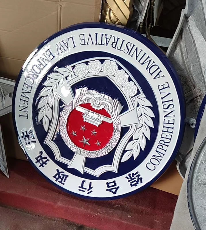 | 安装方式 | 太原综合执法徽定做-小徽章背面都配有穿挂耳孔,钉子钉在墙上,再用穿铁丝钢丝,适合安装在办公室/会议室会场等。大徽后面为膨胀螺丝孔,安装需要定做铁架,铁架固定墙面上后,再将徽章固定在铁架上。玻璃幕墙也是需要铁架方式安装。 |